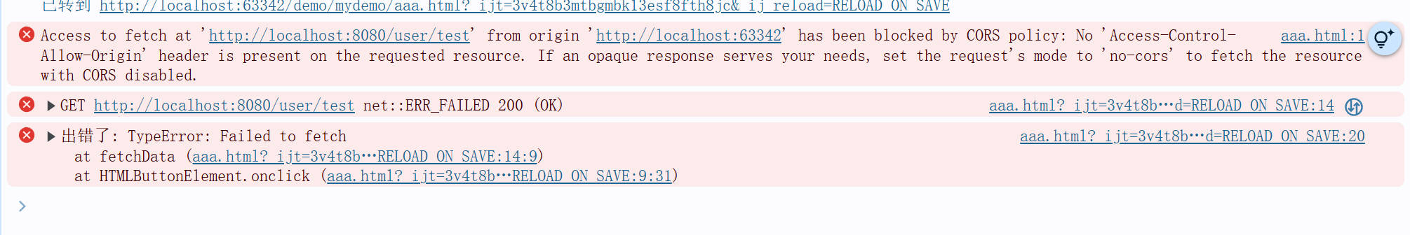 请求可以进来正如上面普通拦截, 但是浏览器并没有展示而是报错了